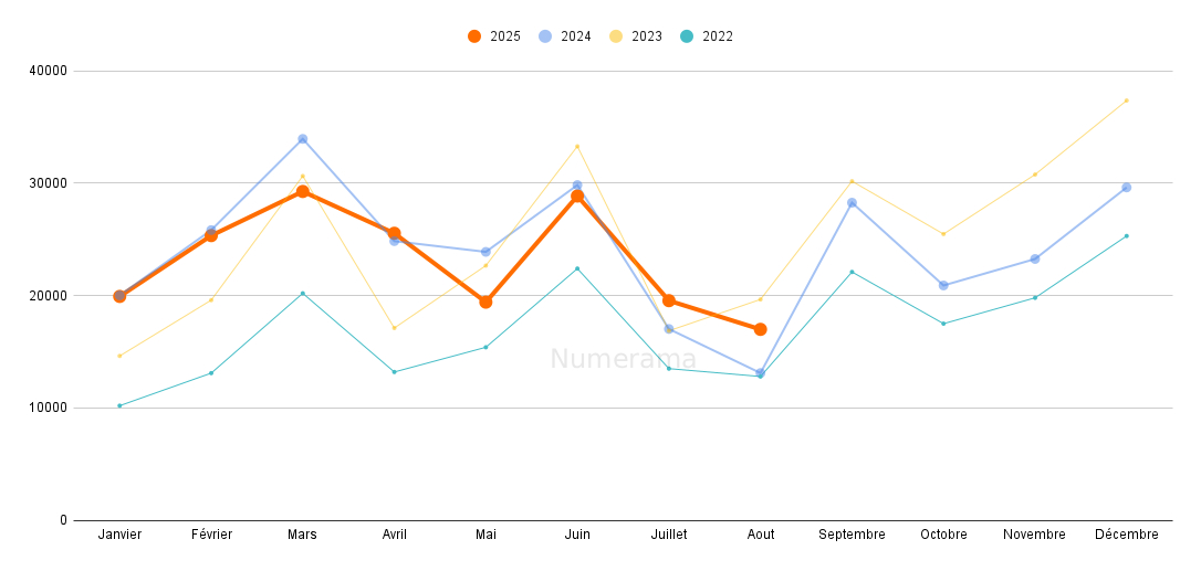 Une fois encore, Tesla s’est retrouvé pendant un mois sans aides à l’achat pour les particuliers, ce qui a reporté certaines commandes et livraisons au mois d’août. Sauf que ce report n’est pas vraiment visible dans les chiffres du mois d’août, ce qui interpelle. Une des conclusions que l’on pourrait tirer à chaud est que Tesla est très loin de crouler sous les bons de commande, et le mois de septembre sera certainement le résultat le plus attendu pour savoir dans quelle situation se trouve réellement la marque en Europe.